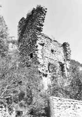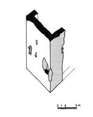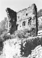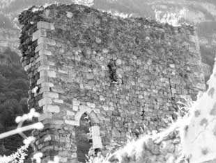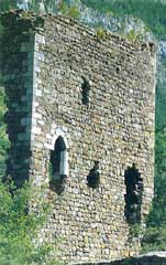 Obra en mampuesto de buena factura, con piedra del río, en los muros, así como sillares en las esquinas. Debía tener planta rectangular, con 6,8 mts de lado mayor y 0,9 de grosor en sus muros, de la que solo se conserva un muro completo y parte de otros dos. La fábrica se articula con sillarejo poco cuidado y mampostería, con cantos de río del lugar. Las cantoneras son de sillar de mejor labra. En el muro O se observa un vano con arco apuntado de dovelas con bisel matando la esquina y una saetera con dintel escalonado y cortada por el derrumbe. Otras dos saeteras se abren al S y al O, con dintel plano y salida vertical, muy estrecha. Se marcan tres plantas en altura con retranqueos sucesivos en los paños E y O.
