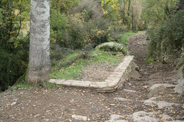De la pila donde cae el agua sale una canal que alimenta un abrevadero que se halla junto al cauce del barranco. En este momento se halla casi cubierta por la tierra y piedras que aporta el barranco.