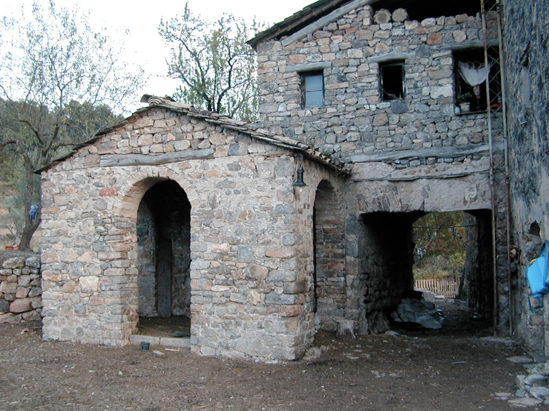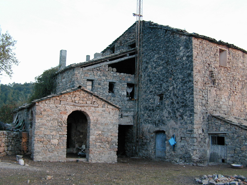 Es un caserío aislado, compuesto, básicamente, por el bloque de vivienda, al que se adosan otras construcciones. La vivienda, construida en mampostería de arenisca parcialmente revocada con mortero de cal y arena y cubierta con losa (sustituida por teja en algunos tramos) a dos aguas perpendiculares a la fachada, es un gran bloque cúbico de considerable altura. Tiene 4 plantas. No presenta excesivos rasgos arquitectónicos de interés que puedan individualizarse. La fachada principal, orientada al sur, abre múltiples vanos de diferentes tamaños, con una distribución muy heterogénea. Por la parte trasera tiene adosado un cuerpo de menor tamaño donde se sitúan las cuadras, con un paso cubierto que lo atraviesa paralelamente a la fachada. Destaca un relieve en la puerta, con una extraña cruz (una variante de una cruz de malta) y una inscripción que la fecha en 1901. A su vez, este cuerpo de edificio tiene adosada, perpendicular a él, la capilla, dedicada a san Pedro. Es una construcción rectangular, de cabecera plana orientada al este, precedida por pórtico a los pies, que abre por tres lados en arcos de medio punto. Al interior la única nave está cubierta por bóveda de cañón, en la que hay pintado un medallón con motivos florales esquemáticos muy similar a los que decoran las bóvedas de las ermitas de Clamosa (último tercio del siglo XIX), entre falsos lunetos también pintados.