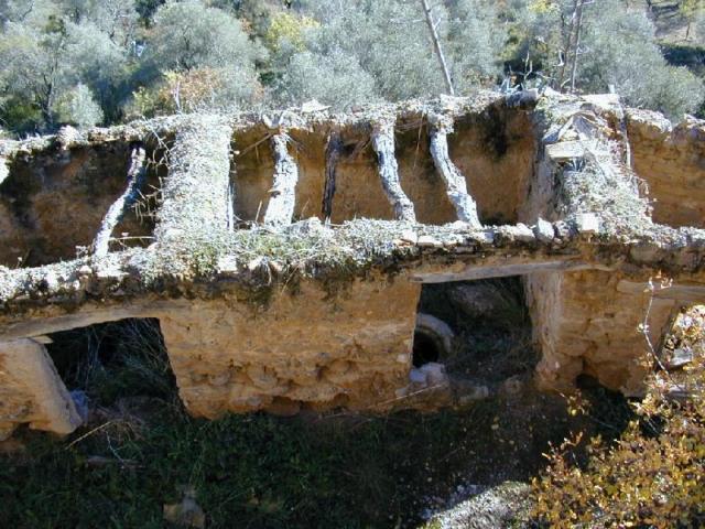 Estos últimos tienen forma globular, una profundidad de unos 2 m y unos 40 cm de diámetro de boca, en la que se ha tallado un rebaje para poder colocar una tapa de madera. Están protegidos por una construcción de mampostería de unos 20 m de largo, unos 2,5 m de ancho y 1,5 m de alto, cubierta con viguetas de madera y teja árabe, que en su interior fue tabicada en siete segmentos más o menos regulares (2,5 m de largo), de modo que cada uno de ellos guarecía uno o dos de estos silos. El hecho de que se tabicara formando casetas con huecos de entrada independiente indica un uso particular por distintos dueños.