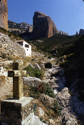 Situada bajo la iglesia, en un lado del barranco que baja del mallo Cored, por su desaparición de este lugar, puede ser la que en la actualidad se encuentra junto a la fuente. Véase la ficha de la Cruz de la Fuente.