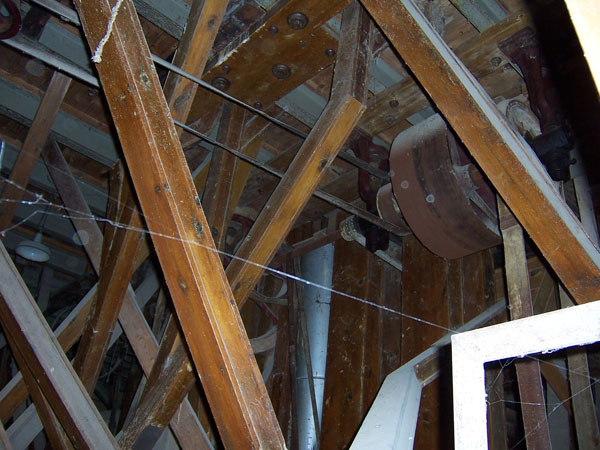En el interior, cada una de las plantas desempeña una función diferenciada en el proceso de producción de la harina. Así, en el primer piso se sitúan los silos, los molinos y el divisor de salvados. En la segunda planta, se sitúan las máquinas limpiadoras de los diferentes procesos por los que pasa el grano y la máquina recolectora de polvo. En el último piso se encuentran los cernedores. Toda la maquinaria se comunica por tubos de madera de sección cuadrada que conforman verdaderos laberintos y que permiten el ascenso y descenso de la harina durante todos los procesos.